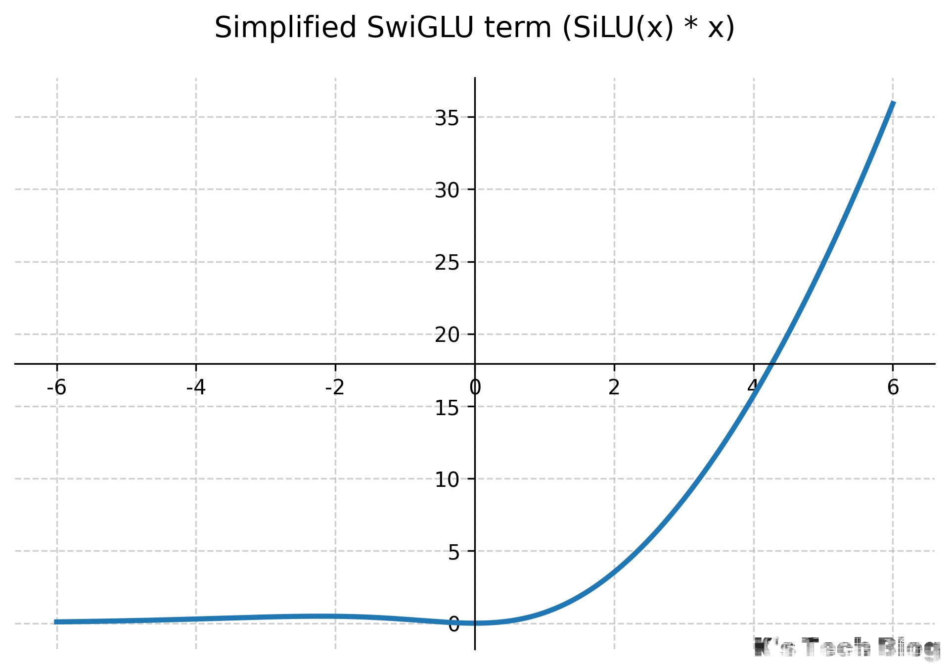 $$ SiLU(x) = x \cdot \sigma(x) = \frac{x}{1 + e^{-x}} $$- 特点: