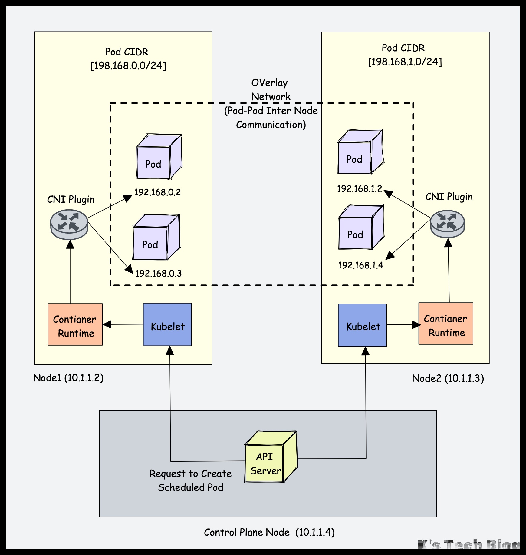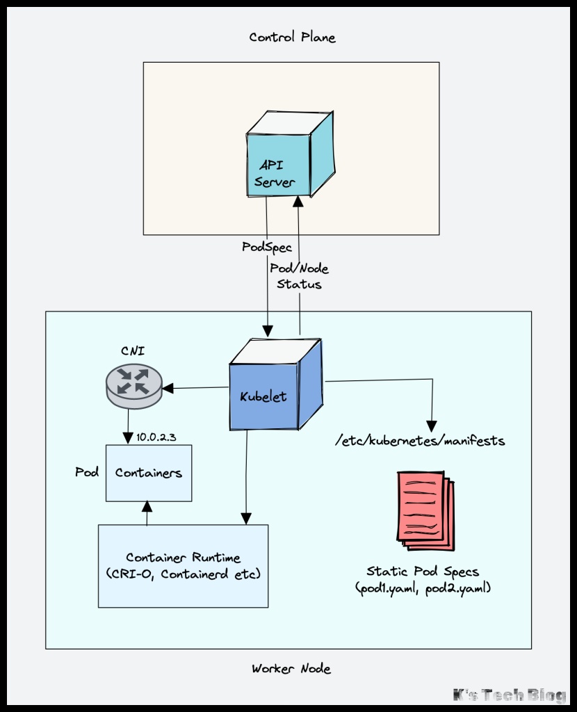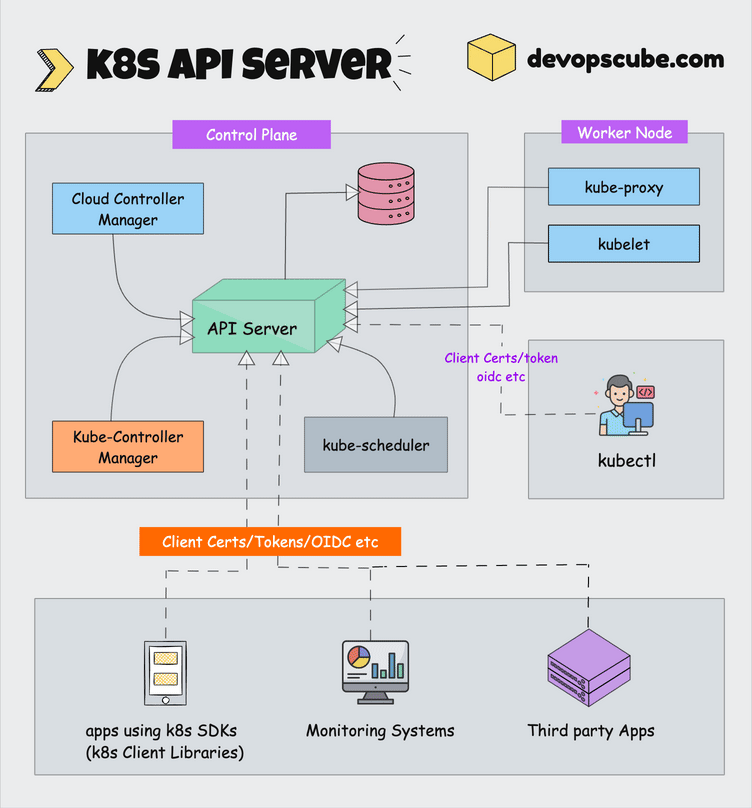 - 控制平面的其他组件(如 Controller Manager 和 Scheduler)通过 API Server 与 etcd 交互。