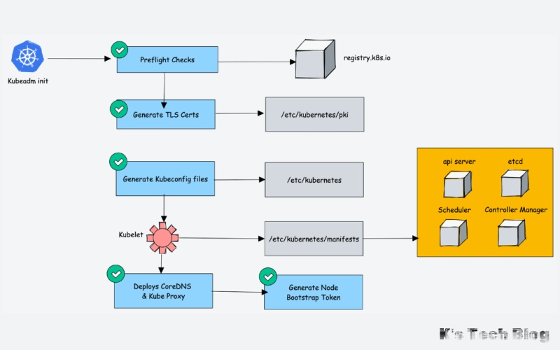 Kubeadm 是一个出色的工具,可以在更短的时间内建立一个工作的 kubernetes 集群。它完成了设置所有 kubernetes 集群组件方面的所有繁重工作。此外,它遵循 kubernetes 集群的所有配置最佳实践。