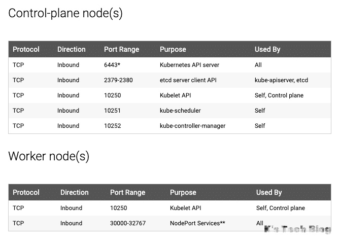 请参考下图并确保控制平面(主节点)和工作节点允许所有端口。如果您要设置 kubeadm 集群云服务器,请确保在防火墙配置中允许这些端口。