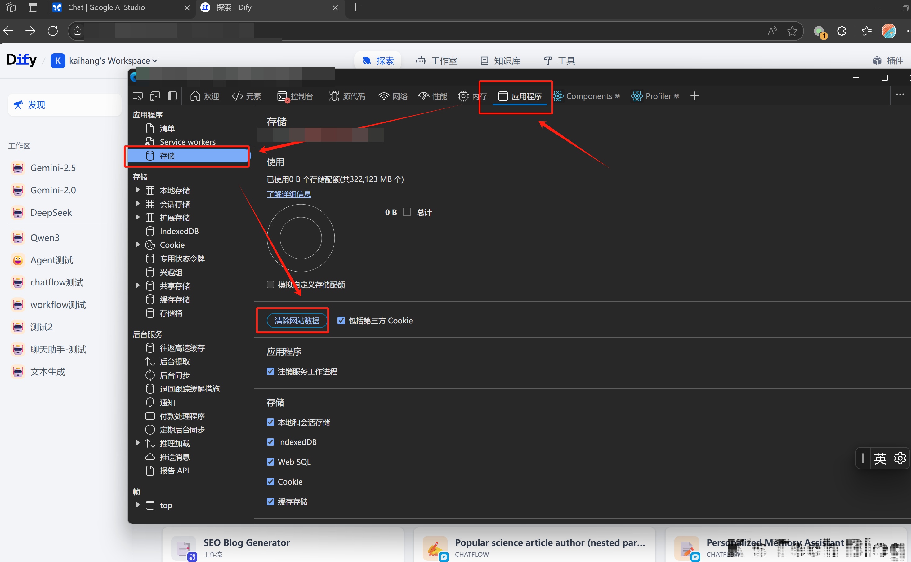 问题分析:通常是浏览器缓存造成的,清除全部浏览器缓存是可以的,但是会导致其他登录的服务重新登陆,太麻烦了。可以针对这个网站清空缓存